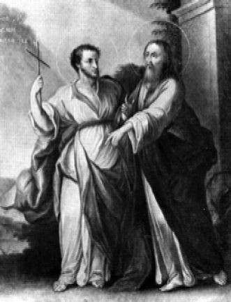 Илл. 19. Пушкин и Даль в виде святых Косьмы и Дамиана. Икона XIX века