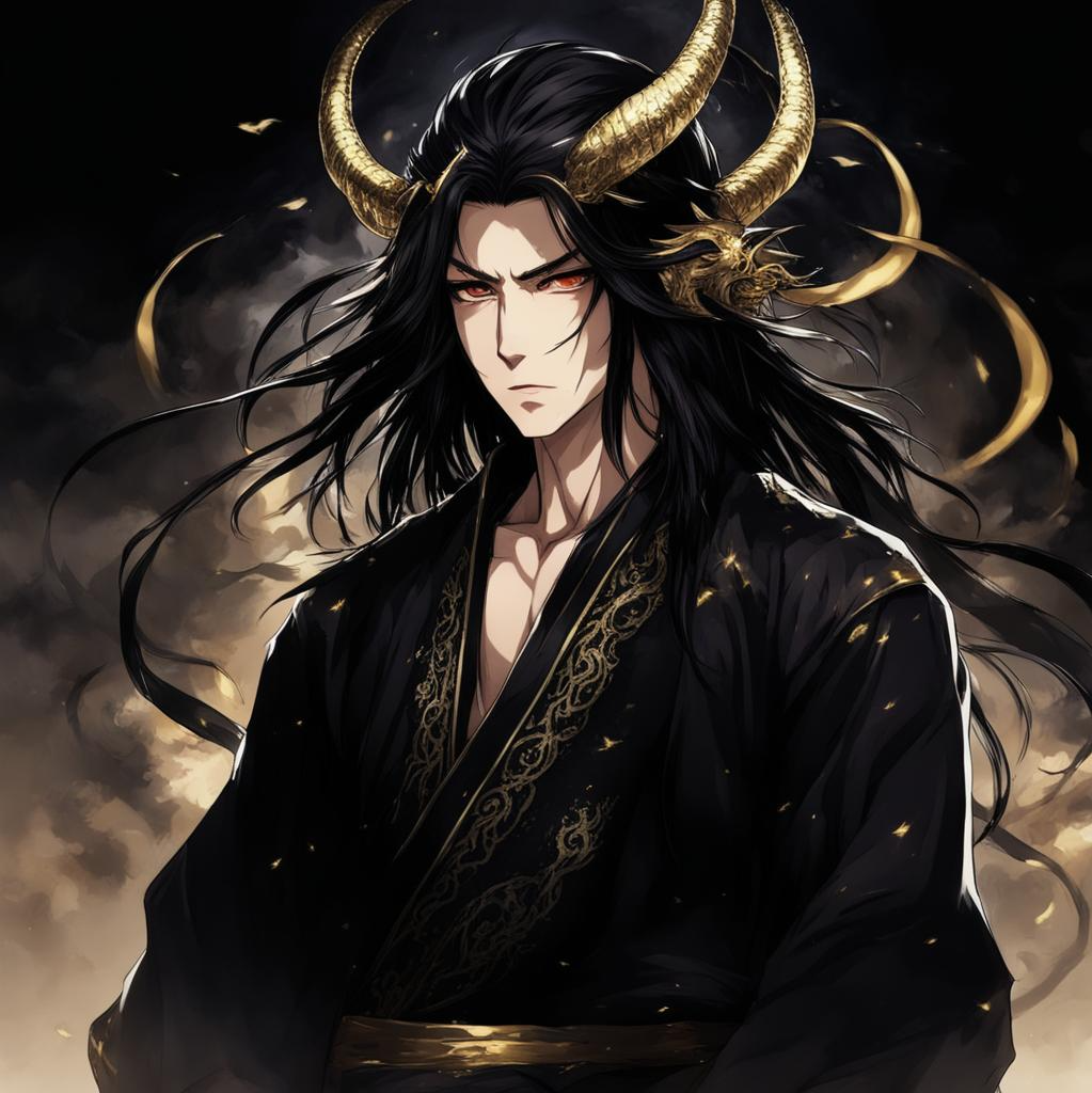 Пока я стоял с разинутым ртом, оглядывая масштаб костяка, Каз за моей спиной буквально растворился. А обернувшись я увидел только молодого парня в ханьфу с золотой вышивкой. Длинные черные волосы обрамляли волевое лицо, а алые глаза сверкали рубинами. Единственное, что отличало его от человека – две пары золотых рогов.