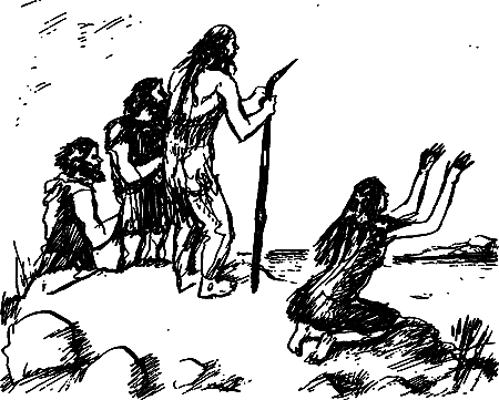 Когда с островка доносились пронзительные вопли женщин, мужчины пускали в сторону леса несколько стрел, иные метали камни из ременных пращей.