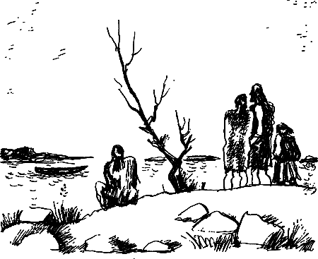 В то самое утро, когда Уоми еще спал там, на берегу, у костра, Гунда на рассвете вышла на южный конец островка, чтобы взглянуть в дальнюю озерную гладь.