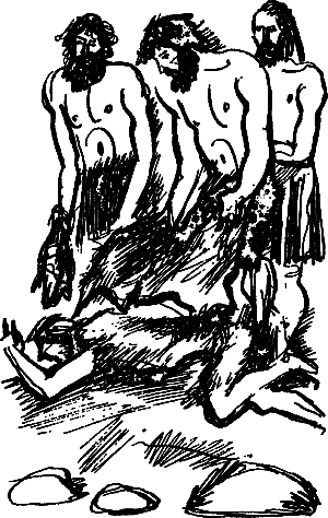Мужчины, старики, женщины и дети следили за ним затаив дыхание. Некоторые опустили головы и зажмурились. Пижму поднял свою страшное орудие. Тяжелый булыжник с размаху ударил Онду по темени.