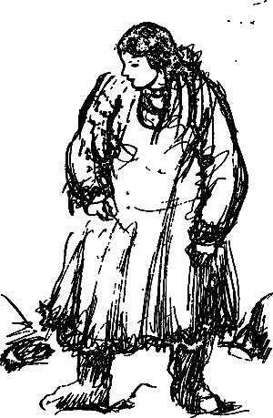 Бормоча что-то под нос, старая колдунья достала из большого берестяного короба все, что полагалось надеть новой колдунье. Сверху лежали сшитые из выделанной оленьей кожи рубаха и набедренники, к который привязывались длинные, выше колен, меховые чулки, внизу была уложена верхняя одежда: меховая, шерсть внутрь, безрукавка, разукрашенная множеством нашивок, и такая же малица с разрезом на груди, обшитая по краям лисьим мехом.
