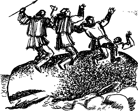 Снова у старого русла реки молча суетились люди. Одни волокли к морскому берегу тяжелые ладьи, подкатывая под них катки. Другие тащили из потайных мест мачты, весла и паруса, сшитые из нескольких кож. Со стороны казалось, будто охотники за этот год впервые выходили в море.