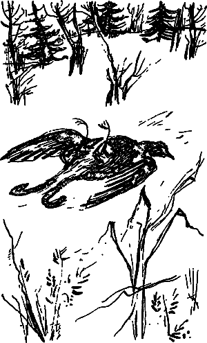 Они двинулись по лыжне, слишком узкой для их лыж. Вскоре им попалась удивительная находка – на снегу лежал большой глухарь, шея которого была зажата двумя палками.