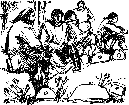 Проголодавшиеся гости жадно накинулись на еду. Они усердно работали челюстями, а берестяные ковши с напитком переходили из рук в руки. Только женихи по-прежнему сидели, как врытые в землю, им не полагалось ни пить, ни есть. Жених будет пировать потом, в землянке невесты.