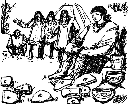 Гостей усадили на поляне посреди стойбища, против входа в землянку Главного. Старики, присев на корточки, неторопливо разложили перед собой принесенные для обмена изделия: кремневые наконечники для копий и дротиков, разные стрелы, острые – на птицу, тупые и короткие – на мелкого пушного зверя.