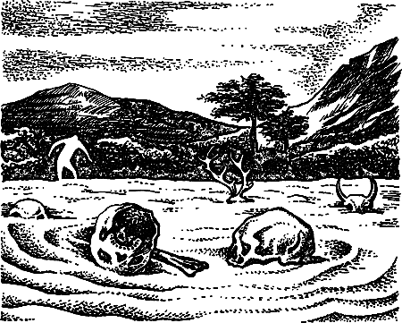Там и сям торчали группы скал и камней, странных, обрывистых, поросших снизу мхом и травой, а вверху обнаженных. Их голые верхушки выступали на ночном небе четкими черными зигзагами.