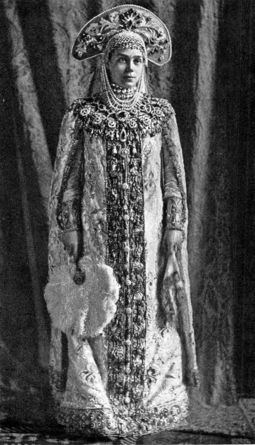 Великая княгиня Ксения Александровна, супруга великого князя Александра Михайловича в русском костюме XVII в. на балу в Зимнем дворце. 1903 г.