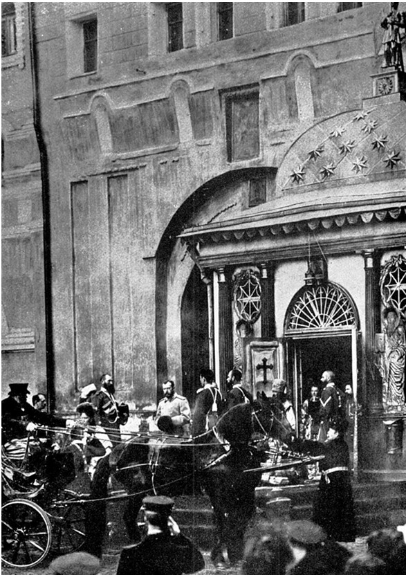 Николай II выходит из Иверской часовни в Москве