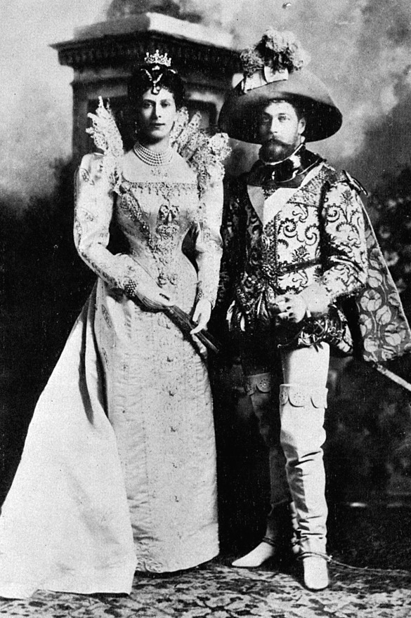 Король Георг V и королева Мария Английские, «любящие кузены» великого князя Александра Михайловича, в костюмах для блистательного бала-маскарада в Девоншир-Хаус. 1897 г.