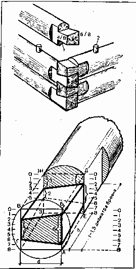 Рассмотрим технику угловых и других сопряжений при рубке стен из брусьев (рис. 98).
