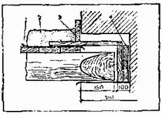 Балки около дымоходов необходимо располагать не ближе 400 мм от внутренней поверхности ближайшего дымохода. Бывает, что нельзя отдалить балку от дымохода. В этом случае балку врубают в ригель, который, в свою очередь, врубают в две балки, что немного ослабляет их. Чтобы уменьшить ослабление, такие балки лучше укладывать более толстыми концами в сторону дымохода (рис. 134).