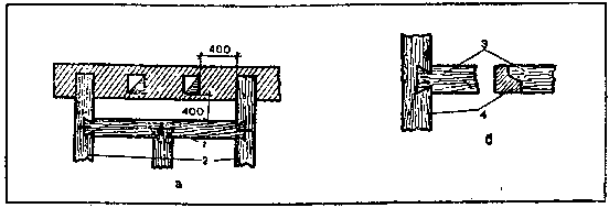 Рис. 130. Заделка концов деревянных балок раствором с щебенкой: