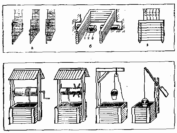 Рис. 16. Деревянные колодцы: