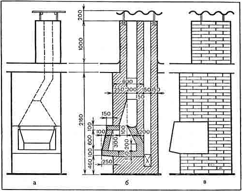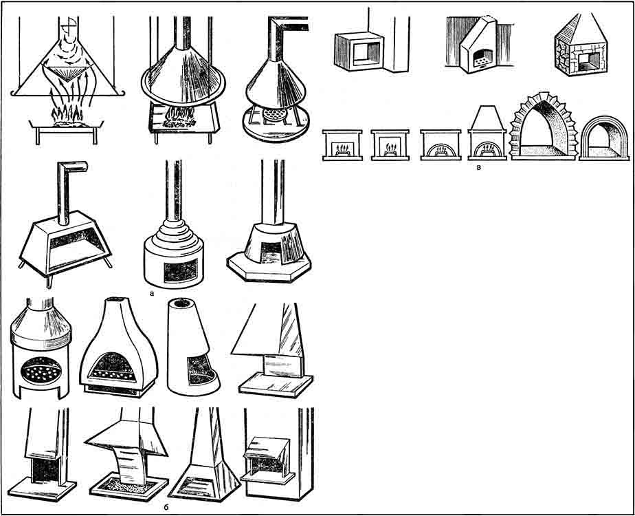 Рис. 106. Разновидности каминов: