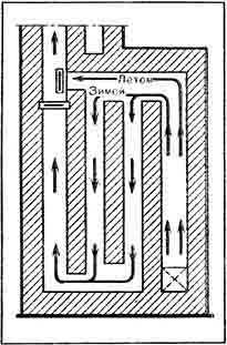 Рис. 57. Отопительный щиток с двумя ходами: зимним и летним