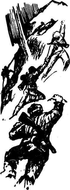 По снегу шли часа два. На спуске в долину он кончился. Началась слякоть. Ноги скользили, подкашивались. Хватаясь друг за друга, чтобы не упасть, бойцы проклинали непогодь, войну, Гитлера… Тропа, как назло, тянулась по самой кромке обрыва: стоит оступиться – костей не соберешь.