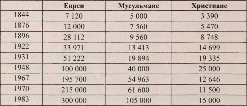 Но арабам не стоит особенно радоваться по этому поводу. Уже задолго до 1948 года Иерусалим населяло больше евреев, чем представителей других основных религиозных конфессий, о чем свидетельствует таблица.