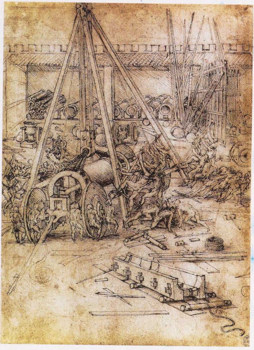 Леонардо да Винчи. Рисунки военных машин. 1487–1490 гг.