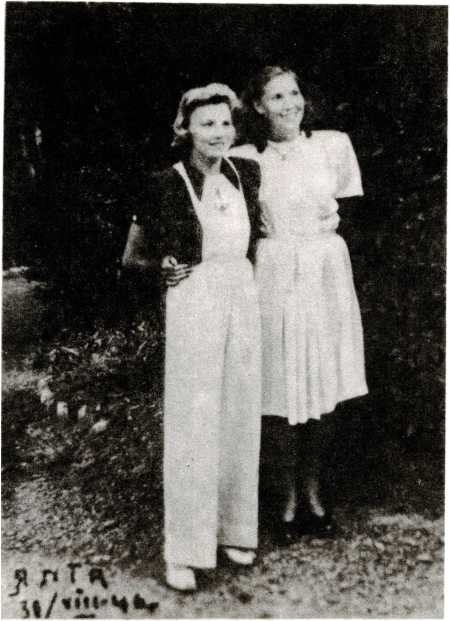 Жена Василия Сталина – Галина Бурдонская (слева) с подругой. Ялта. 1946 г.