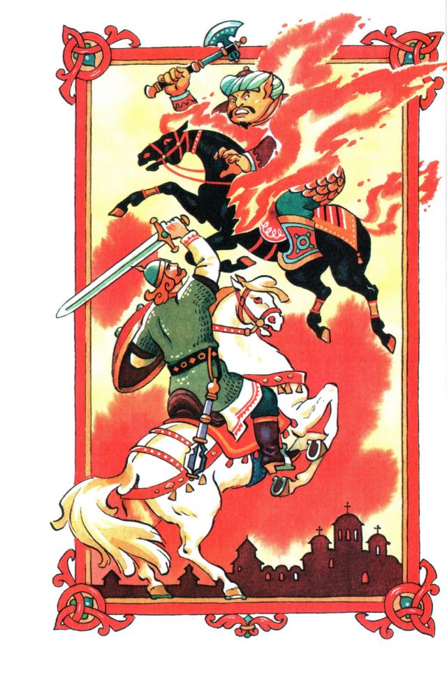 Тут ужас-страх напал на ворогов. Не устояли супротивники, разбежались куда глаза глядят. И очистилась дорога в стольный Киев-град.