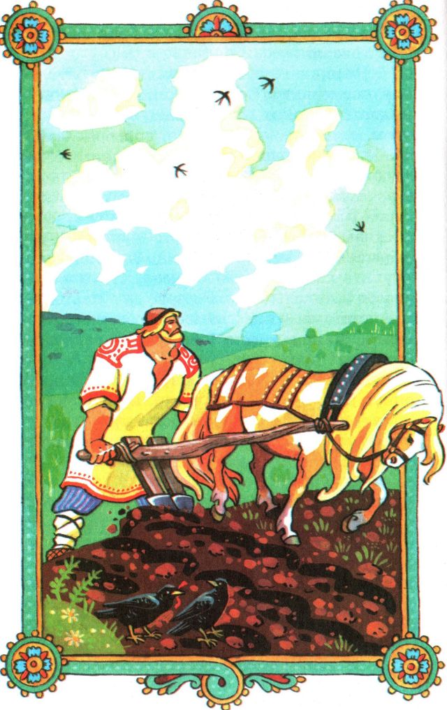 Попридержал пахарь свою кобылку соловую, стал дожидаться князя с дружинниками. А Вольга Всеславьевич подъехал и вымолвил: