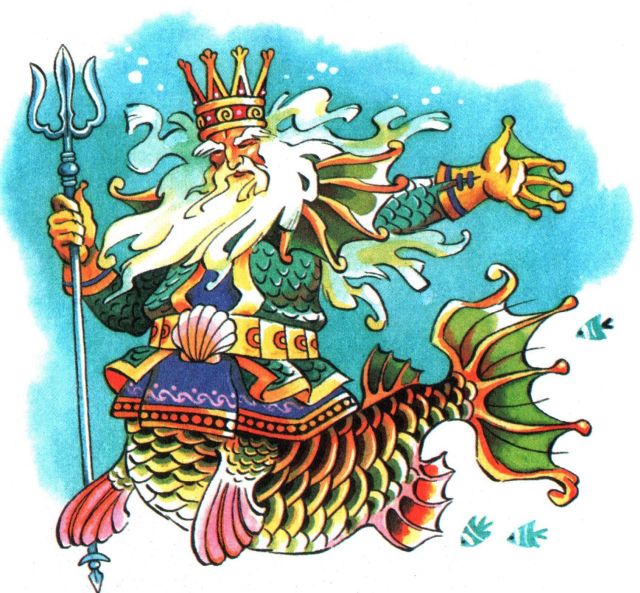Вечером завёл Морской царь пир на весь мир. Съехались цари да царевичи из разных морей. Водяные из разных озёр да рек. Приплыл и Водяной – хозяин Ильмень-озера. Напитков да кушаний у царя Морского вдоволь: пей, ешь, душа-мера!