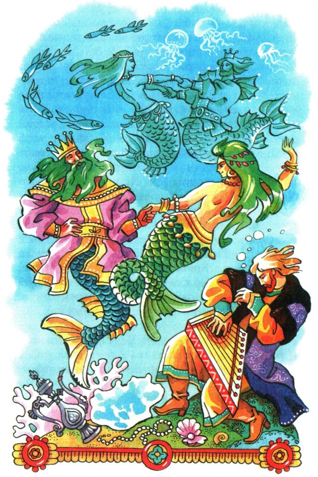 Играет гусляр, а Морские цари с царевичами да Водяные пляшут, покрикивают: