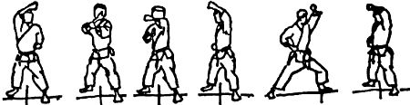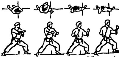 Если при проведении защиты бедра вращаются правильно, то автоматически происходит их обратное движение, что очень способствует проведению контратаки. Говоря иначе, когда бедра полностью повернулись в одном направлении и достигнут предел напряжения в области живота, бедра начинают вращаться в обратном направлении. Сила от этого контрвращения идет по направлению к плечам, верхней части руки и предплечью, усиливается и завершается в кулаке в виде мощного взрывного удара по мишени.
