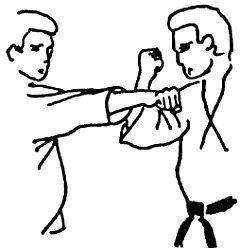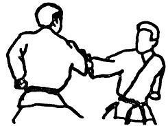 Этот прием является эффективной защитой от удара кулаком в грудь или солнечное сплетение. В то время, как правый кулак противника движется по направлению к вам, отшагните назад правой ногой, толкните предплечье противника в сторону, а затем захватите его предплечье левой рукой, а правой захватите сверху запястье противника. Заставьте противника продолжать движение вперед, для чего тяните его руку к своему правому боку.