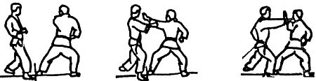 В вышеописанной ситуации левая рука сначала служит для отталкивания атакующего предплечья в сторону, а затем для его захвата.