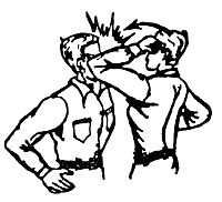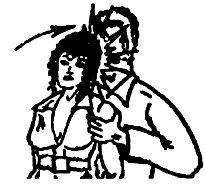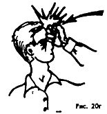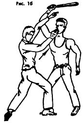 Предварительное отвлекающее воздействие (нажатие, скручивание, удар) является главным условием успешного освобождения от захватов и выполнения заключительного движения. Наиболее действительное средство – удар. Чтобы освободиться от стеснения, обхватов, захватов, следует нанести резкий удар: пальцами в глаза (указательным и средним), бить с короткого взмаха, резко в глазницы и сразу отступить с целью поиска подручных средств, лбом в лицо, если противник держит за руки, плечи, пояс, направленный удар в нос (Рис. 14), (Рис. 18), рукой – кулаком, ребром ладони, локтем снизу, сбоку в живот, по шее, в лицо (Рис. 20 а, б, в,г.)