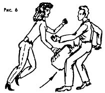 Портфель, чемодан, сумка тоже могут являться средствами защиты. Указанными предметами следует защищаться и наносить удары. Способы действий показаны на (Рис. 6), (Рис. 7).