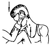 Применять, что удобнее по обстановке. Если удобно, рукой пройти к голове и предварительно надавить пальцами на глаза, как показано на рисунке.