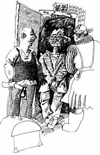 Теперь предстояло убедиться в реальности предполагаемого избавления. Внезапно вперед выступила дворничиха и первой подошла к раскрытой двери, как бы давая понять, что именно она является хозяйкой черной лестницы. Но не успела она ступить за порог, как оттуда, из пыльного и затхлого полумрака, показалась неожиданная и странная фигура человека в сильно помятой, с обвисшими краями зеленой шляпе, в пиджаке, надетом на грязную майку, небритого и тусклого, который с неопределенным мычанием устремился навстречу дворничихе.