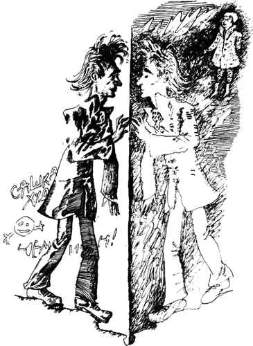 Тут Пирошников и вправду подумал, что он свихнулся. Все факты были против него, и если бы не вспомнились ему внезапно слова бородача-теоретика о каких-то мнимых пространствах, побежал бы наш герой по лестнице, обхватив голову и крича что-нибудь несусветное. Но мысль о мнимом пространстве была как нельзя более кстати. Хотя Пирошников не вполне понимал, что это такое, само слово «мнимый» спасло его в настоящий момент, создав определенную зацепку для сознания, и он ухватился за нее, как за соломинку. Однако теперь Пирошников испугался, что его знакомая, не имеющая никакого представления ни о каких пространствах, обнаружит странности в его поведении, а посему, не совсем привыкнув еще к отражению, он постарался поставить себя на место своего двойника и повернул лицо так, чтобы двойник смотрел на Наташу, а не мимо. Затем он продолжил шествие, кося глазом на стену, и увидел, что отражения пошли рядом. Пирошников затаил дыхание, решаясь на опасный эксперимент, потому что ему вздумалось проверить, что же будет, если он протянет руку таким образом, чтобы двойник его коснулся Наташи.