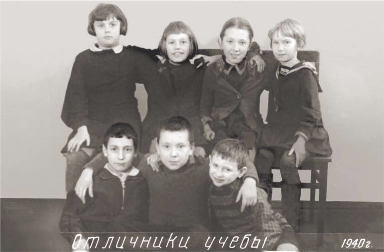 «Отличники учебы». Александр Чубарьян – крайний слева в нижнем ряду. 1940 г.