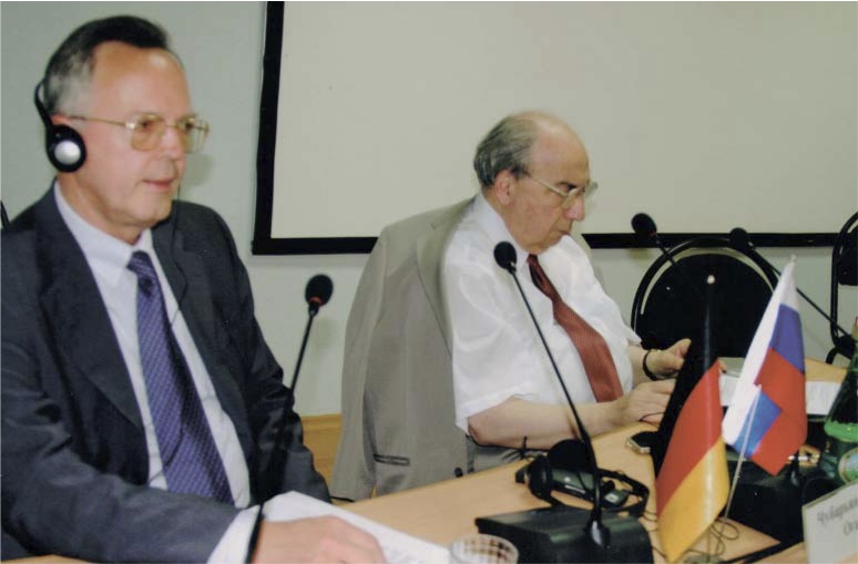 Работает комиссия историков Россия–ФРГ. С сопредседателем комиссии Х. Мёллером. Саратов, июнь 2005 г.