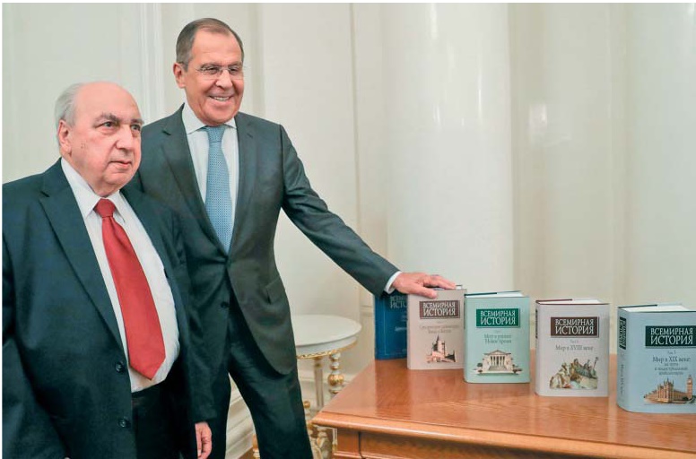С министром иностранных дел России С.В. Лавровым во время презентации шеститомной «Всемирной истории» в Доме приемов МИДа на Спиридоновке. 10 октября 2018 г.