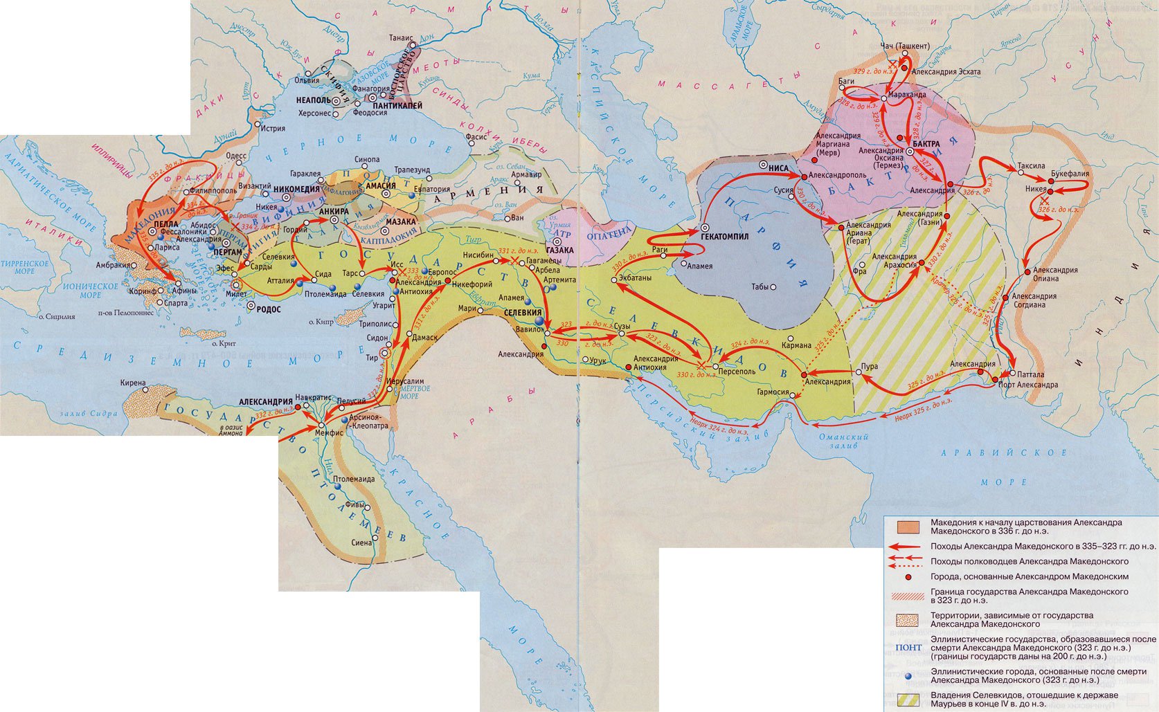 Победа под Арбелами открыла путь в центральные области державы Ахеменидов и положила начало ее распаду. Отложив преследование Дария, Александр повел армию в Вавилон и Сузы, сдавшиеся ему без сопротивления. В Сузах была захвачена царская казна[14] и прочее царское имущество, среди которого и ценности, вывезенные из Греции во время греко-персидских войн[15]. Лишь на пути в Персеполь и Пасаргады, древние столицы персов, македонские войска встретили некоторое сопротивление. Захватив хранившиеся здесь богатства, Александр сжег царский дворец в Персеполе – знаменитый памятник персидского зодчества и символ могущества Ахеменидов, как объясняет Арриан, в возмездие за разрушение Афин и сожжение храмов во время греко-персидских войн. Подчинив важнейшие центры Персидской державы, Александр направился в Мидию к Экбатанам, где Дарий пытался снова собрать войска, чтобы приостановить вторжение в северные и восточные сатрапии, но из-за разногласий среди его военачальников и свиты это ему не удалось. Упорно преследуемый Александром, он бежал в Гирканию и там был убит низложившими его сатрапами; преемником Дария был провозглашен Бесс, сатрап Бактрии.