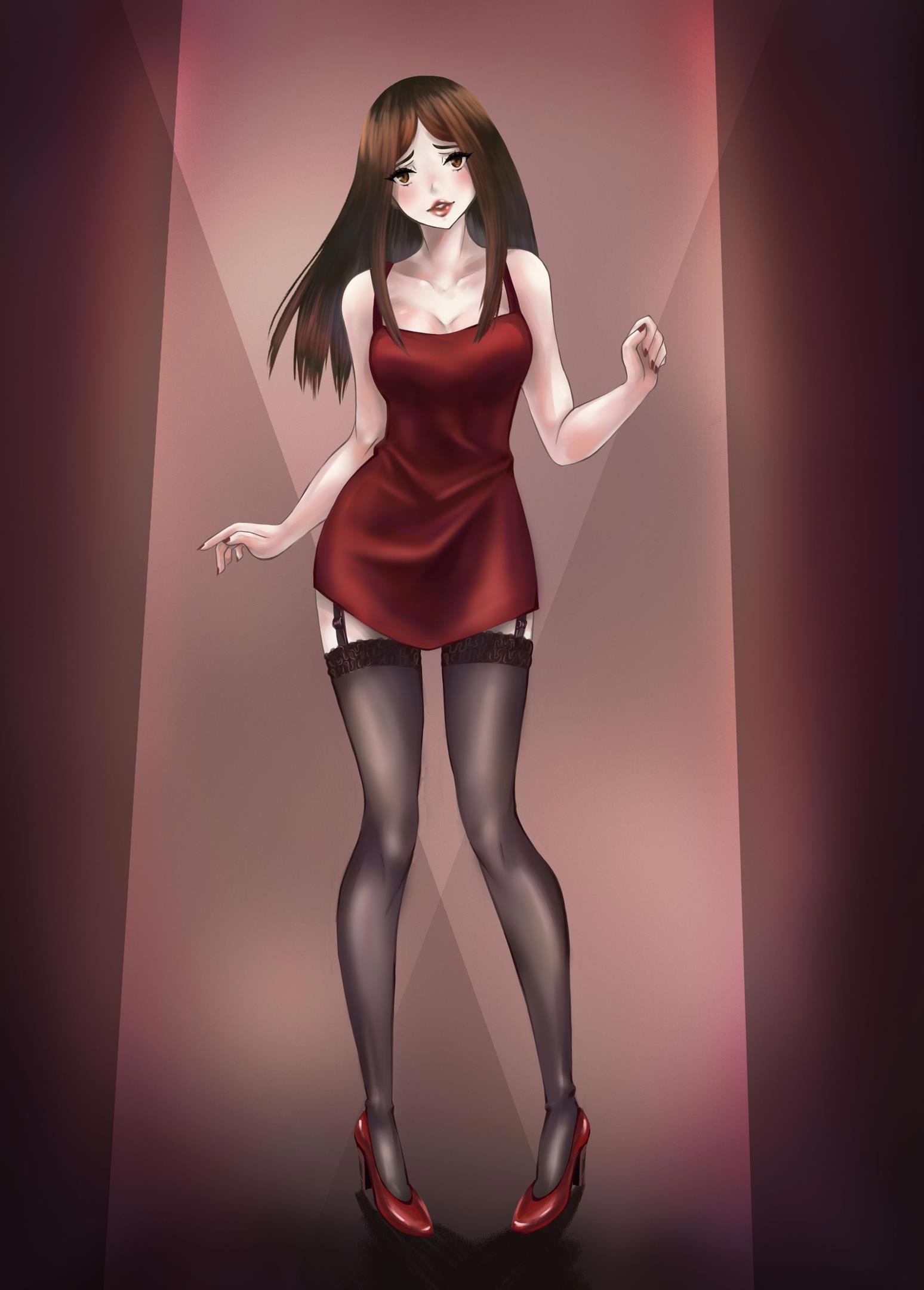 А посмотреть было на что. Красные туфли с чёрной подошвой, красное платье, и, как вишенка на торте, чёрные чулки на подвязках. Она была похожа на секретаршу – очень соблазнительную секретаршу.