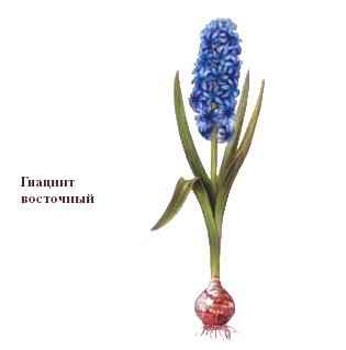 ГИАЦИ́НТ, род многолетних луковичных растений сем. лилейных. Включает 4 вида. В цветоводстве используется один вид – гиацинт восточный. Выс. стебля 20—25 см. Цветонос сочный, безлистный. Цветки колокольчатые, простые или махровые, собраны в рыхлое кистевидное соцветие, душистые, разнообразной окраски. Листья линейные, прикорневые. Луковицы ширококонические. В культуру введён в нач. 15 в. Его выращивали в садах Турции и Греции. В 1562 г. луковицы были завезены в Венецию, а затем в Англию и Голландию, которая стала второй родиной гиацинтов. В России появились в 1730 г. Современные сорта по окраске цветков подразделяют на 6 групп: синие, сиреневые, розовые, красные, белые, жёлтые и оранжевые. Луковицы сортов с синими, голубыми и фиолетовыми цветками имеют фиолетовые наружные чешуи, с белыми – светло-серые, с жёлтыми – серовато-кремовые, с розовыми – сиреневые. Размножают в основном вегетативно – луковицами-детками. Семенной способ применяют для получения новых сортов. Используют гиацинты для разных видов цветочного оформления, срезки и выгонки в зимнее время.