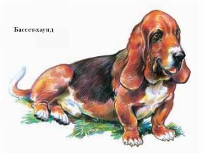 БА́ССЕТ-ХА́УНД, порода гончих собак. Обладают прекрасными охотничьими качествами, однако чаще используются как декоративные. Родина – Великобритания. Собаки средней величины (выс. в холке 38 см, масса ок. 23 кг), с длинным, как у таксы, туловищем и такими же короткими, но более толстыми ногами. Лапы массивные. Голова большая, уши длинные, свисают почти до плеч. Глаза выразительные, нижнее веко отвисает, обнажая красную конъюнктиву. Губы тёмные, со свисающими краями. Под гортанью подвес из складчатой кожи. Хвост слегка поднят, как у гончих, не купируется. Шерсть короткая, жёсткая. Окрас двух– или трёхцветный (различные сочетания жёлтого, белого, чёрного). Разводят породу во всех странах; в России малочисленна.