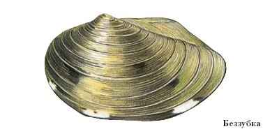 БЕЗЗУ́БКА, пресноводный двустворчатый моллюск отр. пластинчатожаберных. Постоянный обитатель стоячих или медленно текучих вод – прудов, озёр и рек в Европе, Передней и Средней Азии, в Сибири. Тонкостенная раковина беззубки в длину достигает 20 см, изнутри покрыта слоем перламутра. Створки раковины лишены зубов, образующих замок (отсюда название моллюска); они удерживаются вместе двумя мышцами-замыкателями. Беззубка перемещается по дну со скоростью 20—30 см/ч. Питаются, отфильтровывая из воды частицы органических веществ. Оплодотворённые яйца самки вынашивают в наружных жабрах в течение осени и зимы. Весной из яиц выходят личинки (глохидии), которые прикрепляются с помощью двух крючков к жабрам и покровам рыб и ведут паразитический образ жизни до превращения во взрослую стадию.