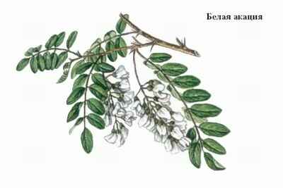 БЕ́ЛАЯ АКА́ЦИЯ (робиния ложноакациевая), растение рода робиния. Происходит из Северной Америки, широко культивируется в южных районах умеренной зоны. Листопадное дерево выс. 20—25 м. Крона ажурная, раскидистая. Побеги с шипами. Листья очередные, непарноперистые, с 11—15 яйцевидными листочками. Цветки мотылькового типа, белые, очень ароматные, в крупных поникших кистях. Плод – плоский боб дл. до 12 см. В России белую акацию разводят с сер. 18 в. Вначале её выращивали только в Московском ботаническом саду Демидова. Позднее она стала украшать улицы, сады и парки юга европейской части страны.