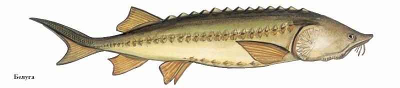 Белуга – одна из крупнейших рыб, обитающих в водах России, дл. тела до 4—5 м, масса до 1,5 т. Нерестится в глубоких местах с быстрым течением, на каменистом и галечном дне. Оплодотворение наружное. Самки, в зависимости от размеров, вымётывают от 200 тыс. до 8 млн. овальных тёмно-серых икринок, более крупных, чем у остальных осетровых, липких, приклеивающихся к камням. Примерно через неделю из икры выклёвываются личинки и быстро переходят на самостоятельное питание. После выхода из икры молодь сразу же скатывается в море. Уходят в море после нереста и взрослые особи. Размножается белуга не ежегодно: интервал между нерестом одной и той же особи составляет несколько лет. Рыбы, достигшие половой зрелости (самцы в 12—14, самки – в 16—18 лет), совершают миграцию из моря к местам размножения – в реки. Когда-то белуга из Каспийского моря поднималась высоко по Волге и притокам, ловили её и в Оке. Живёт белуга до 100 лет. Численность этих ценных промысловых рыб постоянно сокращается. Их запасы поддерживаются за счёт искусственного разведения на рыбоводных заводах. Азовский подвид белуги – в Красной книге России.