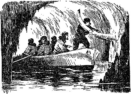 Мы осторожно вошли на шлюпке в пещеру. Солнечные лучи проникали через лед, и свод казался светящимся.