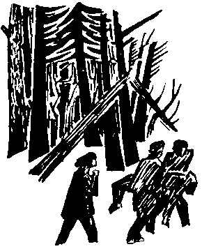 Еще в первые дни пути Колыванов объяснял Василию, когда идешь но лесу маленькой группой, все время кажется, что кто-то за тобой следит. Человек начинает беспокойно оглядываться, останавливаться, по ночам плохо спит, а от этого изматывается раньше времени. Колыванов называл это боязнью пространства. Василий и на самом деле в первые дни чувствовал себя в лесу тревожно. Но потом заботы поглотили его, и он забыл о своих тревогах. И вот теперь… Чеботарев хмуро пояснил: