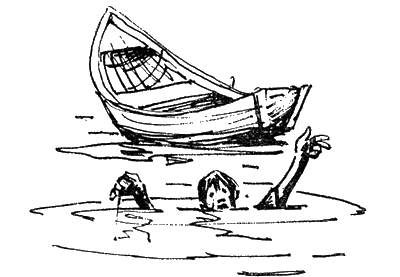 Вдруг – что такое? – лодка впереди приостановилась, весло вылетело у рыбака из рук, а сам он, взбрыкнув ногами, бултыхнулся в воду! Я заторопился, не понимая, в чем дело. Когда через минуту он вынырнул метрах в семи от своей лодки, отчаянно махая руками, я забеспокоился не на шутку. Рыбак между тем снова скрылся под водой. Было такое впечатление, что его тянул на дно какой-то груз.