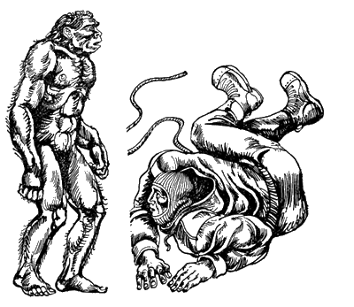 Но как ни коротко виденное, оно осталось в мозгу. Зрачки оттенялись коричневым ободком на серых, похожих на мрамор белках; над ними – выдвинутые вперед брови, слитые в общий надглазный вал, и за ним – ничего: лба нет… Коричневая, собранная в морщины кожа. Губы едва прикрывают зубы, плоский нос, подбородок скошен, шеи нет, голова приросла к плечам… И все же это не морда зверя, это лицо!.. Больше того: оно покривилось, придвинулось ко мне, губы раскрылись: